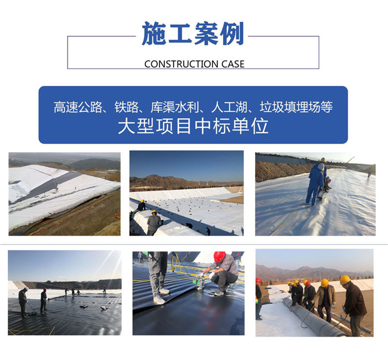 產(chǎn)品介紹: 防滲復(fù)合土工膜:復(fù)合土工膜是用土工織物與土工膜復(fù)合而成的不透水材料,它主要用于防滲,復(fù)合土工膜分為一布一膜和兩布一膜,抗拉、抗撕裂、頂破等物理力學(xué)性能指